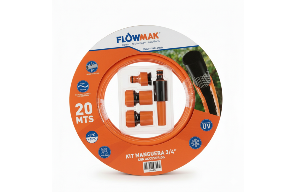 KIT MANGUERA FLOWMAK 3/4" C/ACCESORIO 20 MT.